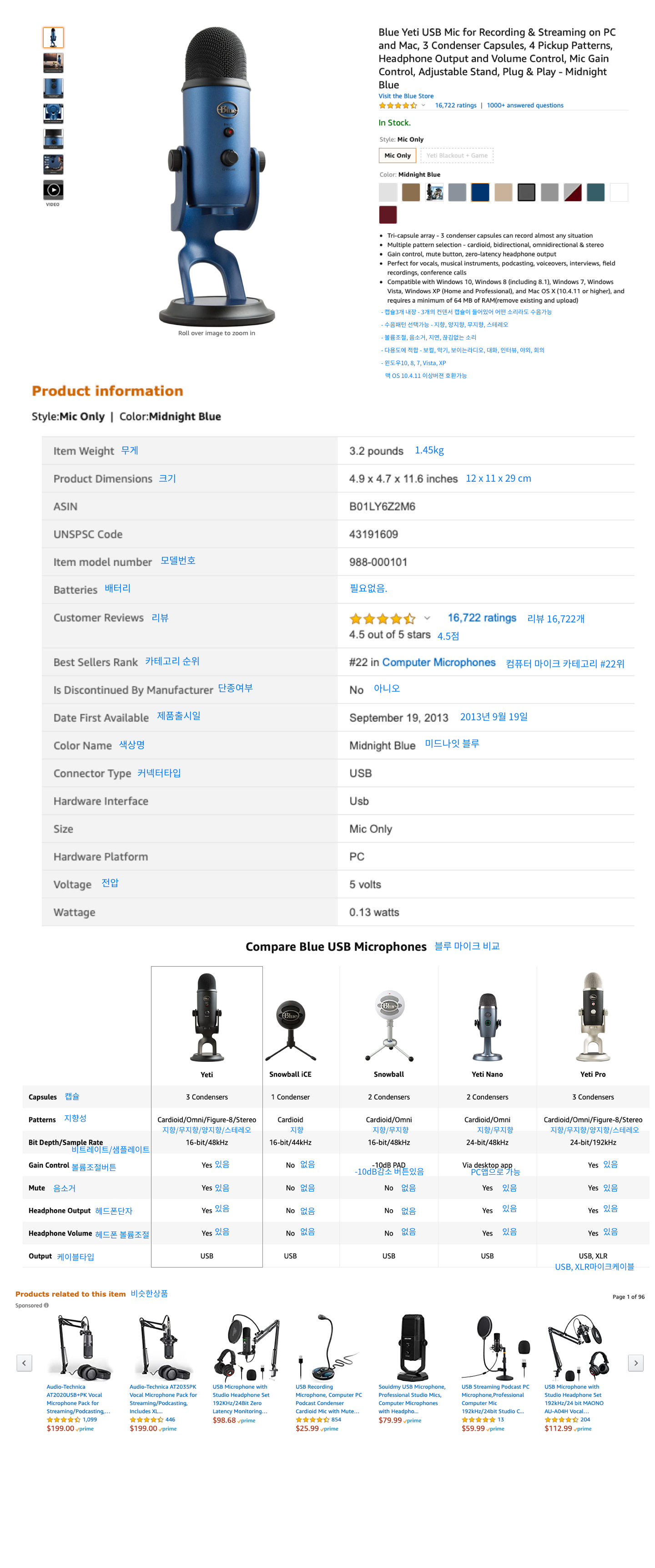 아마존 링크 www.amazon.com/Blue-Yeti-USB-Microphone-Midnight/dp/B01LY6Z2M6?ref_=ast_sto_dp&th=1